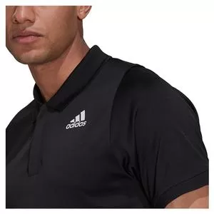 Show off your serves with our adidas Men`s Freelift Tennis Polo Black and White. This tennis polo is made with AEROREADY material and its FreeLift construction allows for an enhanced range of motion so you can play your best. You will also enjoy its perforated collar and hidden snap button placket. Plus it has perforated elastic cuffs at the sleeves for additional ventilation and a slim tailored fit to provide comfort and style on the court. You will also get to show off your favorite brand with the logo on the chest and it is made with Primegreen materials so you can feel good about your eco-friendly purchase.