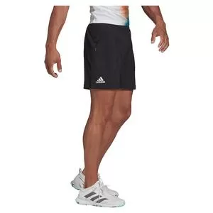 Bring your game up to the next level with the adidas Men`s Melbourne Ergo 7 Inch Tennis Short Black and White. The side pockets have been redesigned with innovative construction to lock in your spare tennis balls. Its waistband not only stretches for a better fit but is also ventilated at the back for additional breathability. Along with the front drawcords, getting the perfect fit has never felt better. The inner leg features a stretch mesh gusset to allow for maximum freedom of movement and more breathability. Sweat-wicking AEROREADY technology keeps you feeling fresh even in the most intense moments. PRIMEBLUE fabric is made from Parley Ocean Plastic, helping to keep our oceans cleaner for the future.Â