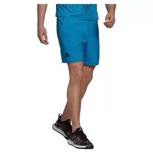 Own the court with the adidas Men`s Primeblue Ergo 7 Inch Tennis Short in Sonic Aqua. Its flexible fabric with ergonomic cutlines allows for a full range of motion. The stretch-woven material is also perforated for extra breathability. Moisture-absorbing technology keeps the sweat off your skin to help you stay dry and comfortable throughout the match. An elastic waistband and adjustable drawcord help ensure a comfortable, customizable fit. Made with Primeblue material, these high-quality recycled fibers help reduce your environmental impact without sacrificing performance. Be sure to pair with the matching adidas Men’s Primeblue Freelift Tennis Top for the complete look!
