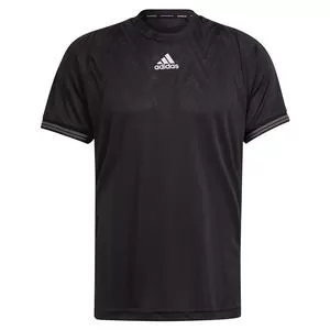 Conquer the court with the adidas Men`s Primeblue Freelift Tennis Top in Black. AEROREADY technology provides sweat-wicking moisture management to keep you free of distractions and keep your focus. The flexible Freelift construction stretches to match your movements and provide a superior range of motion. Made with Primeblue fabric, the material is composed of high-quality recycled fibers to improve sustainable production and reduce your impact on the environment. Be sure to pair with the matching adidas Men’s Ergo 7 Inch Tennis Shorts for the complete style.Â