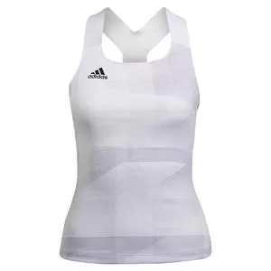 Summons the Summer Sports in this adidas Women’s Primeblue Heat.Rdy Tokyo Y-Back Tennis Tank Top in White and Dash Grey. Made from Primeblue material that is 100% recycled polyester, this tennis tank will keep you in the game from the first point to a nail-biting finish. With HEAT.RDY technology, your sure to stay cooler during the hot summer months since this tank has targeted key ventilation zones. It also features FreeLift construction which enhances your range of motion, allowing you to get to your next shot, and even hit a winner! With a vibrant zig-zag pattern, low rounded neck and Y-Back design, this tank is sure to keep your opponent guessing about your next shot, but not your sense of fashion! Be sure to pair this tank with other quality apparel by adidas for a truly winning ensemble.