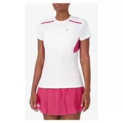 Fila Women’s Center Court Short Sleeve Tennis Top White And Pink Peacock