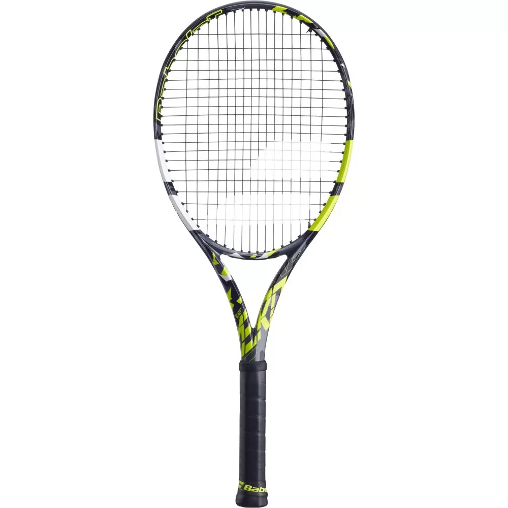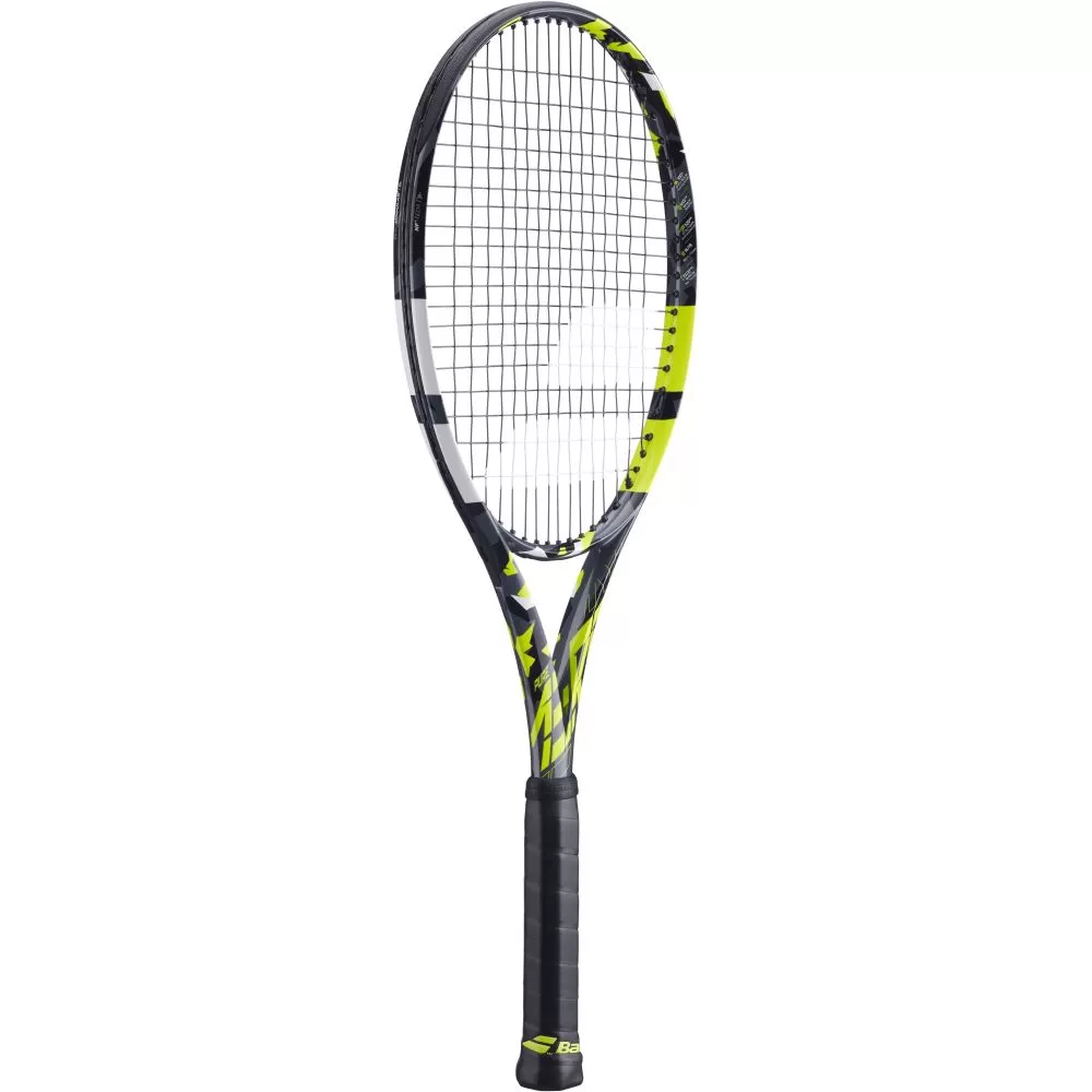 The Babolat 2023 Pure Aero Tennis Racquet is the spin machine to help feed your insatiable desire to dominate the game. In 2003, convinced that players would use spin to dominate, Babolat launched the Pure Aero: the first racquet engineered specifically for spin. Year after year, Babolat collaborated with Rafael Nadal and top players to innovate and Evolve the world’s first aerodynamic frame. The results speak for themselves. With 22 Grand Slam singles titles and counting, the Pure Aero is a feared weapon on tour. Now it’s your turn to discover what the ultimate spin machine can bring to your game. If you want to dominate with spin and power, there’s only one racquet for your game: The Pure Aero. Not sure? Just ask Rafa. Or his opponents. The 100 sq in head combined with the new tighter 16/19 string pattern increases control compared to the previous generation, while maintaining power and spin.