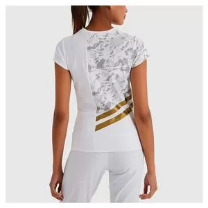 Get ready for the competition with our Ellesse Women`s Integral Tennis T-Shirt. This tennis t-shirt has a comfortable crew neck with an asymmetrical style. It also has a touch of gold on the side and is equipped with moisture-wicking technology and breathability to keep you dry and comfortable while playing. This t-shirt also has active-stretch technology that allows the shirt to move with you instead of hindering you. So, swing higher and run faster in this top and other pieces from this line. Pair this top with the Ellesse Total Tennis Ball Short for a complete look.Â