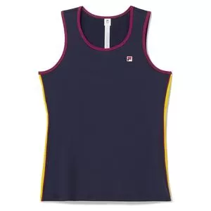 Start your day in the Fila Women`s Heritage Full Coverage Tennis Tank Navy and Magenta Purple!  This tank features 30+ UV protection that will keep your skin protected from the sun. The fabric contains wicking properties that will keep the sweat off of you, so you can feel cool and fresh all day. This tank effectively reduces the development of bacteria and odor. The fabric is very stretchy, and will accommodate you in all of your movements. The contrasting stripes on the side of the tank add a stylish flair that will spice up your wardrobe. Stay fresh and fashionable in Fila! Â