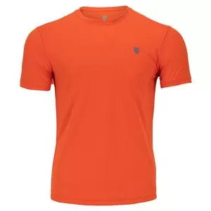 Step into the court with the K-Swiss Men`s Surge Short Sleeve Tennis Crew. Sometimes, simple is best, and with just a nice vibrant color and heat transfer finished K-Swiss Logo, you have everything you need to make a statement. Made using high-tech Texollini fabrics, the breathable mesh jersey is treated with UPF 50+ protection to keep you safe from the sun’s most harmful UV rays and help you perform your best.Â