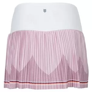 Get into the action with our K-Swiss Women`s Pleated 14.5 Inch Tennis Skort. This tennis skort has a straight silhouette that is lightweight with pleats that will move with you as you bound across the court. It also has a wide comfortable waistband and a pair of undershorts for extra coverage. Plus these shorts have ball pockets for extra storage whether it be your phone, keys, or a couple of tennis balls. Add this skort to your tennis wardrobe to bring a stylish pattern to the courts.Â