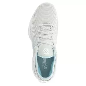 The new K-Swiss Women`s Hypercourt Supreme builds on the success of one of the most popular shoe models in the sport: Hypercourt. Players will benefit from K-Swiss’ latest midsole technology, Surge+ 7.0, as well as upgraded iterations of past technologies, including DragGuard 7.0 for added outsole durability. The Hypercourt Supreme also introduces a soft bootie construction for dynamic movements. In all, the shoe is designed for competitive, aggressive movers who want a comfortable shoe that performs at the highest level.