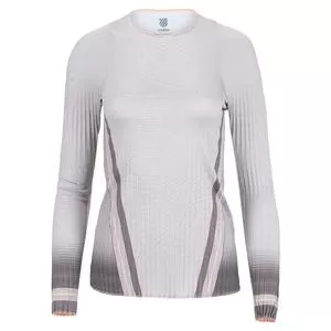 Get into the game with our K-Swiss Women`s Pleated Long Sleeve Tennis Crew in Asphalt. This tennis top is made with lightweight breathable material. It also has a high neckline with a full back for extra coverage while you play. This top has a flattering fitted look and would pair nicely with your favorite leggings or other shorts and skorts from K-Swiss lines.Â