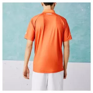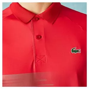 Bring forth your inner champion with the Lacoste Men`s Novak Djokovic Tennis Polo. The featured design is like a tennis ball zooming back and forth through the court, giving the impression of the fast rallies that the best in the business are known for. Raglan-style sleeves give your arms a more natural range of motion while the dropped hem adds extra coverage to help you move with confidence. Check out the latest from the Lacoste Djokovic collection and bring the best you to the court!Â