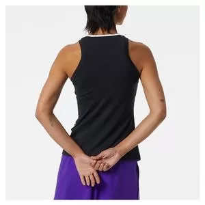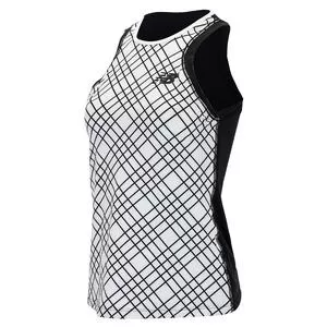 Show off your style with our New Balance Women`s Tournament Printed Tennis Tank in White and Black. This tank has a crisis cross pattern across the front with a solid black back. It also has a slight racerback giving you both coverage and mobility, plus the high neckline gives a sleek athletic look. This tank is also equipped with NB Dry, which provides fast drying and moisture-wicking technology. Add this piece to your wardrobe for a stylish, athletic touch to any outfit.Â