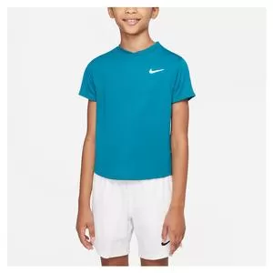 The NikeCourt Boys’ Dri-FIT Victory Short Sleeve Tennis Top is upgraded to give your little champion a winning edge. This top is designed with soft fabric and Dri-Fit technology to keep him sweat-free and comfortable all the time. Now with updated raglan style sleeves, his swings will feel more smooth and natural. It’s a classic fit top, and he’ll love wearing this for practice and matches alike!