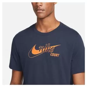 Celebrate the Swoosh with the Nike Men`s Court Dri-FIT Swoosh Tennis T-Shirt. The original iconic logo is outlined over the current version, creating a 3D effect that represents Nike’s journey from the past to the present. Its ribbed crew neckband stretches as you move and the shirt is made with incredibly soft jersey fabric. Nike Dri-Fit technology wicks away sweat for quick evaporation to keep you cool, dry, and comfortable.Â