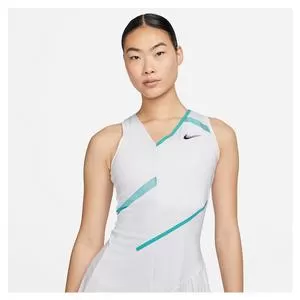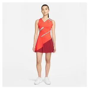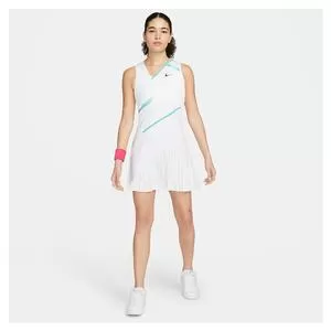 Paying tribute to Nike`s rich history, the NIKE Women`s Melbourne Team Court Tennis Dress features asymmetrical strips of mesh and tape inspired by the iconic Windrunner. It offers Dri-FIT technology that wicks moisture away from your skin to keep you dry and comfortable during your game. Super soft, stretchy knit with flowy pleats allows for a full range of motion as you run and slide across the court. The fabric is made with at least 50% recycled polyester fibers. The original Swoosh at the chest celebrates its anniversary by showcasing the original Swoosh outlined over the current version.
