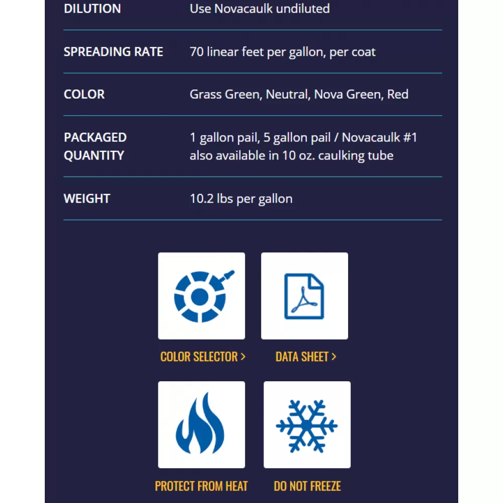 Packaged Quantity: 1 gallon pail, 5 gallon pail / NOVACAULK #1 also available in 10 oz. caulking tube