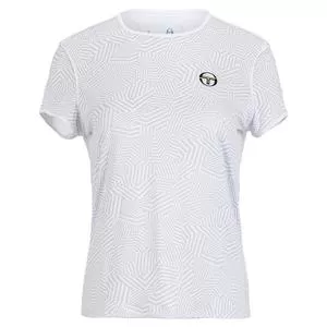 Look good for your match. The Sergio Tacchini Women`s Melbourne Dazzle Tennis Top in White has a bold, all-over print and is made with moisture-wicking fabric that keeps you dry and comfortable on the court. It`s cut to resist cling and has a natural, non-restrictive fit that allows you to move and play your best.